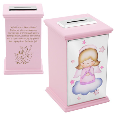 Skarbonka dla Dziecka / Własny Grawer / Prezent na Chrzest dla dziewczynki / Stal posrebrzana