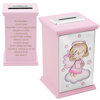 Proponujemy państwu wyjątkową skarbonkę, która świetnie sprawdzi się na urodzinki, chrzest, czy Dzień Dziecka. Skarbonki są świetnym pomysłem na prezent, który łączy w sobie swój pamiątkowy i praktyczny charakter - rodzice od najmłodszych lat będą mogli uczyć dziecko oszczędzania i przedsiębiorczości. Delikatny, uroczy wygląd skarbonki z różowymi akcentami sprawia, że będzie to idealny prezent dla dziewczynki.