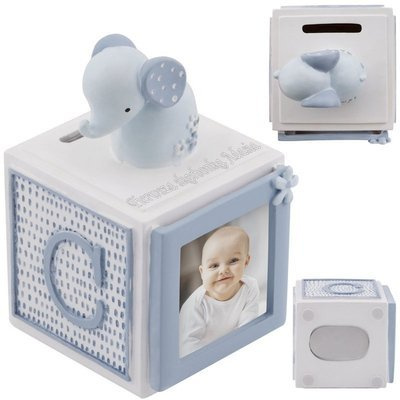 Skarbonka dla chłopca dzięki stylowemu designowi pasuje do każdego pokoju dziecięcego i stanowi piękną dekorację. Dodatkowym atutem naszego upominku jest indywidualna dedykacja umieszczona na górze skarbonki tuż przed słonikiem. Krótka dedykacja sprawi, że prezent będzie służył jako pamiątka na lata! Posiada ona również miejsce na umieszczenie zdjęcia dziecka.