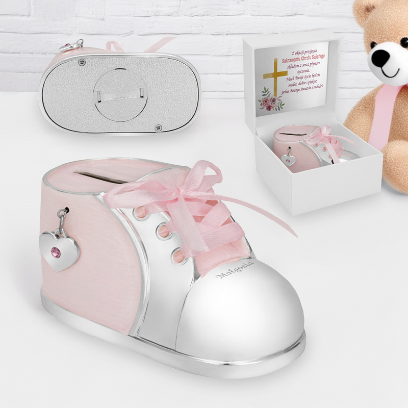 Skarbonka Różowy Bucik z grawerem / Pudełko z dedykacją