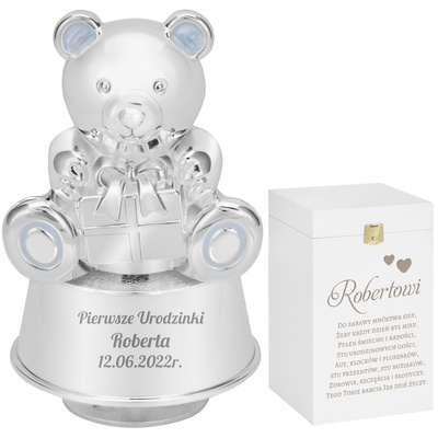 Skarbonka z pozytywką / Miś z prezentem / BłękitnyCena: 199,00 zł / szt.