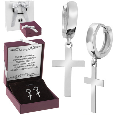 Bazą kolczyków są kółka, dzięki czemu zapięcie jest łatwe i bezproblemowe. Drobne zawieszki w kształcie krzyżyków łączą w sobie elegancki wygląd i użyteczność - dodają eleganckiego akcentu, nie przeszkadzając w codziennych czynnościach. Delikatne wykonanie idzie w parze z niską wagą, dzięki czemu nie stanowią obciążenia dla ucha.