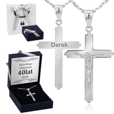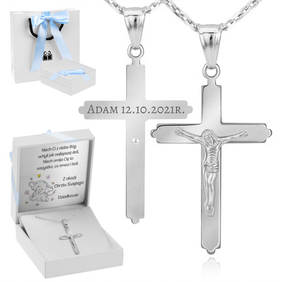 Srebrny duży krzyżyk z Jezusem / na I Komunię Św. / Chrzest Św. / pr. 925 / z GraweremCena: 79,00 zł / szt.