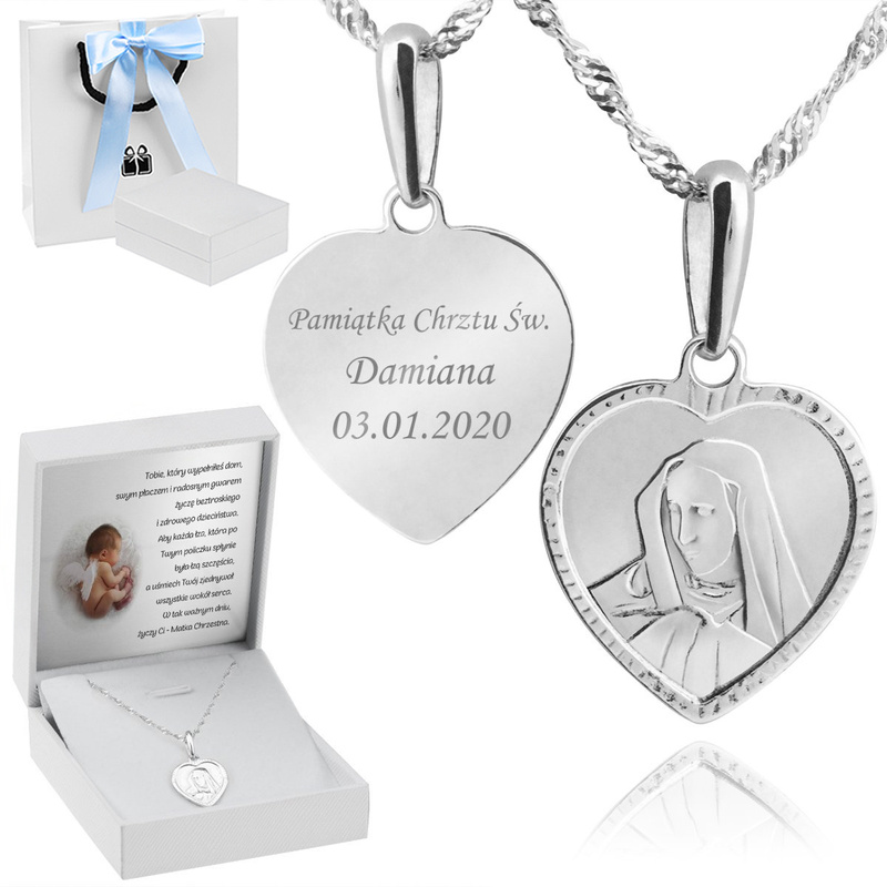 Srebrne medaliki w kształcie serca, w którego środku znajduje się wizerunek Matki Boskiej to doskonała pamiątka Chrztu Świętego, I Komunii Świętej czy też narodzin dziecka. Jest to nieodłączny element ważnych uroczystości.