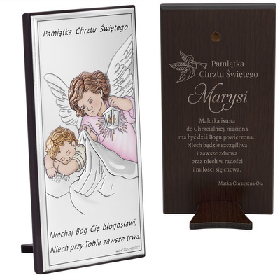 Proponujemy Państwu piękny obrazek przedstawiający Anioła Stróża czuwającego nad śpiącym dzieckiem. Płaskorzeźba wykonana jest w technologii bilaminatu, co oznacza że na blachę z aluminium jest nałożona warstwa srebra pr. 925. Warstwa srebra zabezpieczona jest specjalnym lakierem ochronnym, dzięki któremu nie czarnieje i zachowuje swój blask.