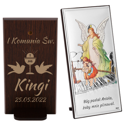 Tył produktu możemy przeznaczyć na dowolny grawerunek. Może to być fragment modlitwy, życzenia lub data i rodzaj wydarzenia. Tak spersonalizowany upominek będzie ponadczasową pamiątką na lata. Prezent doskonale sprawdzi się na chrzest lub komunię.