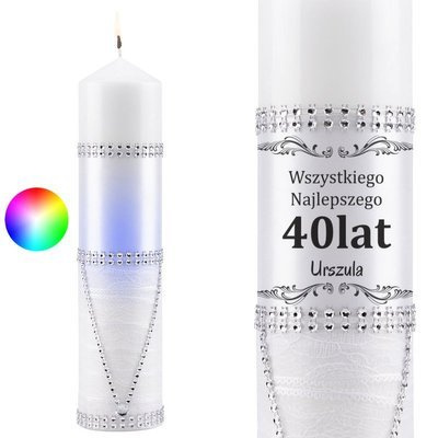 Mamy do zaoferowania elegancko zdobioną świecę z wewnętrznym podświetleniem w formie diod, które po zapaleniu knota samoczynnie zaczynają się świecić barwą zmieniających się kolorów. Po zgaszeniu świecy podświetlenie znika. Podświetlona personalizacja nabierze wyjątkowego, oryginalnego charakteru - na wszystkich zrobi wrażenie.