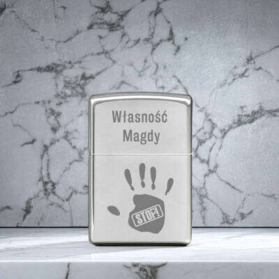 Tekst, prostą grafikę / logo lub dedykację na zapalniczce umieścimy w technologii grawerowania diamentem. Grawerowanie diamentem charakteryzuje się doskonałą jakością oraz perfekcją wykonania. Uzyskujemy piękny, subtelny grawer, który jest trwały i nie ściera się, jest w kolorze zapalniczki.