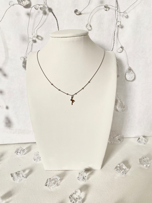Stalowa celebrytka z perłami i krzyżem / Stal 316L