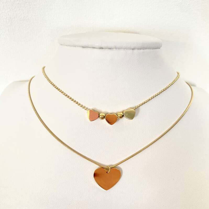 Stalowa podwójna celebrytka z sercami / Stal 316L