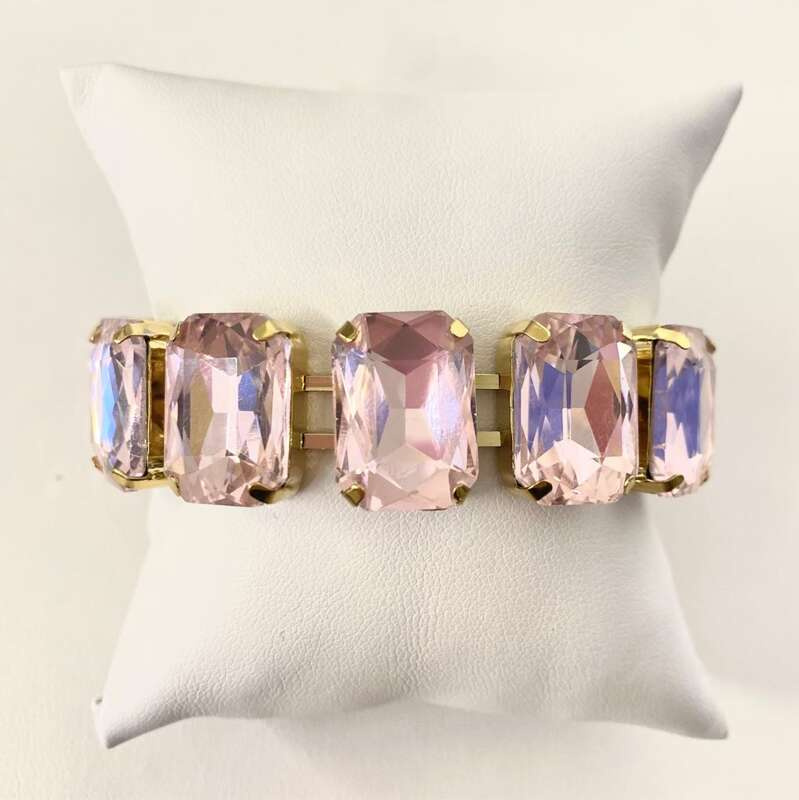 Stalowa bransoletka z dużymi różowymi kryształami / Stal 316L