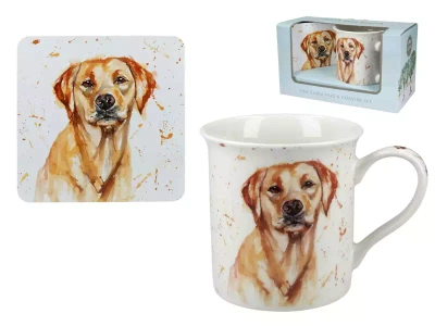 Kubek z podkładką Labrador z porcelany, motyw psa rasy labrador